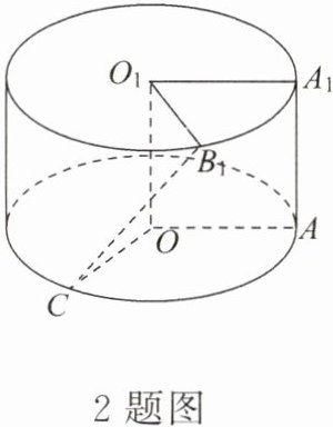 2.将边长为1的正方形$AA_{1}O_{1}O绕OO_{1}$旋转一周形成圆柱,如图,$\overset{\frown}{AC}长为\frac{2\pi}{3}$,$\overset{\frown}{A_{1}B_{1}}长为\frac{\pi}{3}$,其中$B_{1}与C在平面AA_{1}O_{1}O$的同侧.则异面直线$B_{1}C与AA_{1}$所成的角的大小为( )