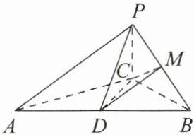 由(1)知 $ PA \perp $ 平面 $ PBC $,所以 $ DM \perp $ 平面 $ PBC $。