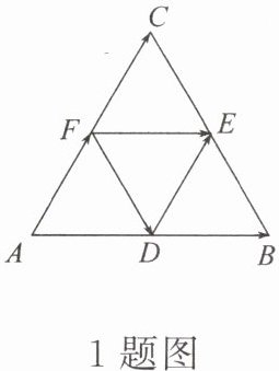 且 $DF = EC$,所以 $\overrightarrow{DF} = \overrightarrow{BE}$,$\overrightarrow{DF} = \overrightarrow{EC}$,