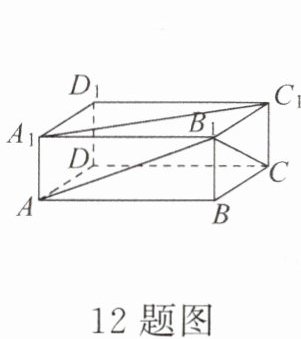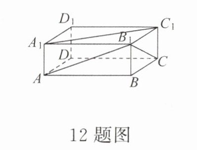 12.如图所示,$ABCD-A_{1}B_{1}C_{1}D_{1}$是长方体,$AA_{1}= a,∠BAB_{1}= ∠B_{1}A_{1}C_{1}= 30^{\circ }$,则AB与$A_{1}C_{1}$所成的角为____,$AA_{1}与B_{1}C$所成的角为____.