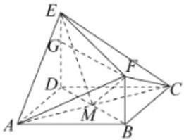 CD 设 $ AB = ED = 2FB = 2a $,因为 $ ED \perp $ 平面 $ ABCD $,$ FB // ED $,则 $ V_1 = \frac{1}{3} \cdot ED \cdot S_{\triangle ACD} = \frac{1}{3} \cdot 2a \cdot \frac{1}{2} \cdot (2a)^2 = \frac{4}{3}a^3 $,$ V_2 = \frac{1}{3} \cdot FB \cdot S_{\triangle ABC} = \frac{1}{3} \cdot a \cdot \frac{1}{2} \cdot (2a)^2 = \frac{2}{3}a^3 $,如图,连接 $ BD $ 交 $ AC $ 于点 $ M $,连接 $ EM $,$ FM $。
