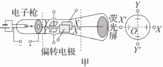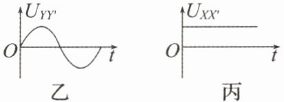 5. 如图甲所示是示波管的原理图,如果在电极$XX'$之间所加的电压按图丙所示的规律变化,在电极$YY'$之间所加的电压按图乙所示的规律变化,则荧光屏上会看到的图形是 (