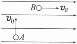 6. 如图所示,质量为 m,带电量为 q 的粒子,以初速度$v_{0}$,从 A 点竖直向上射入真空中的沿水平方向的匀强电场中,粒子通过电场中 B 点时,速率$v_{B}= 2v_{0}$,方向与电场的方向一致,则 A、B 两点的电势差为 (