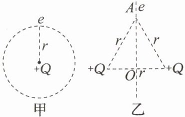 【解析】图甲中,点电荷对电子的引力为 $ F_1 = \frac{kQe}{r^2} $,