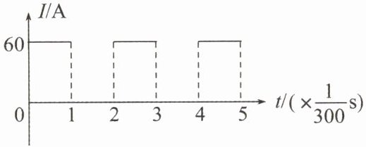 由图可知,电鳐每次放电时间$ t_0=\frac{1}{300}\ \text{s} $,放电电流$ I=60\ \text{A} $。