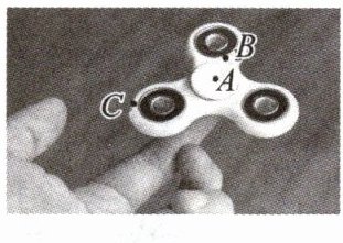 2. 如图是一种叫“指尖陀螺”的玩具。当将陀螺绕位于中心A的转轴旋转时,陀螺上B、C两点的周期、角速度及线速度的关系正确的是(