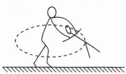 解:女运动员受重力 $ mg $ 和男运动员的拉力 $ F $ 作用,两力的合力提供向心力。
