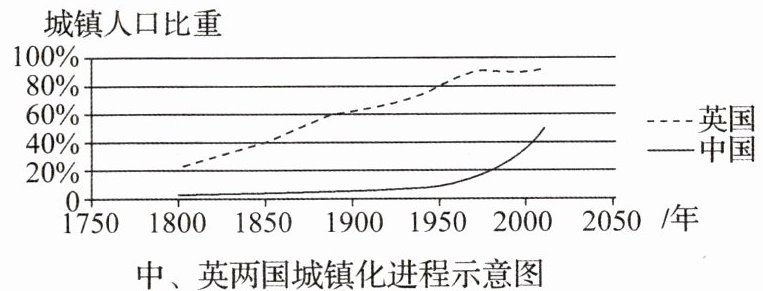 (1)读图,对比中英两国城镇化水平从30%提升到50%的发展过程的差异。