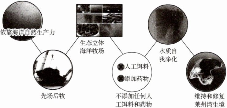 海洋牧场是促进传统渔业向现代渔业转型升级的重要手段。现代海洋牧场通过投放鱼礁、增殖放流等做法对渔业资源进行保护和增殖,实现海洋空间的可持续发展。近年来,山东省贯彻海洋发展新理念,大力推进海洋牧场建设,形成了泽潭模式,即“科研院所+企业+合作社+渔户”的海洋生态混养系统(下图)。据此完成3、4题。