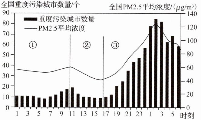 9.①时段重度污染城市主要集中在北方地区,则该时段大气污染主要来自(