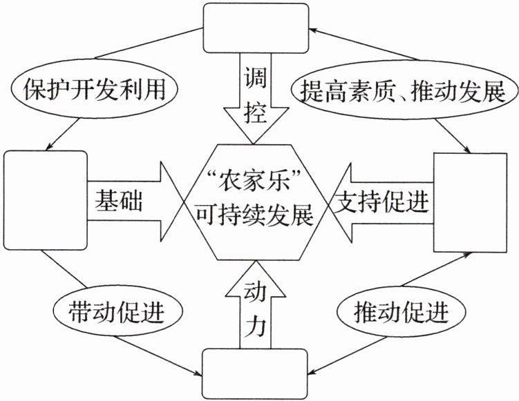 武汉市向社会公布东西湖区石榴红村等 8 个村被评为武汉市首批生态村。据介绍,这些村历来重视环保,倡导生态文明,注重人与自然的和谐,成为远近闻名的“农家乐”旅游景点,有力地促进了当地社会经济的发展。下图为武汉市“农家乐”可持续发展系统结构图。
