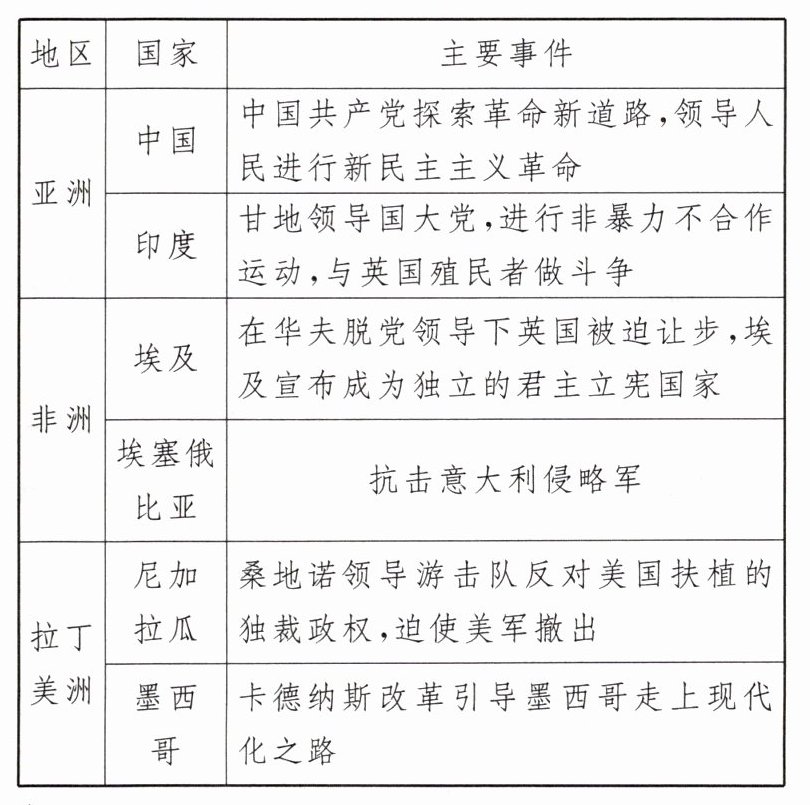 材料二 两次大战之间亚非拉主要民族民主运动一览表