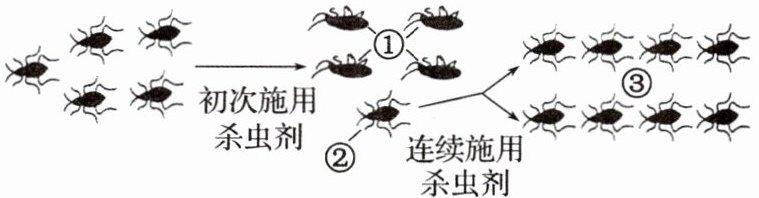A、C、D 变异与选择无关,变异发生在选择之前,①类个体大多被淘汰的原因并不是该种杀虫剂是否诱发其产生抗性基因,A 正确;抗性基因的根本来源是可遗传的变异,②③类个体的抗性基因来源于遗传或自身的基因突变,B 错误;若连续施用杀虫剂,抗该种杀虫剂的基因频率会越来越趋近 1,C 正确;杀虫剂直接选择的对象是昆虫的抗药性或不抗药性的表型,D 正确。