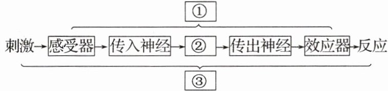 B 图中表示了反射的过程是一定的刺激被感受器所感受,感受器产生了兴奋,兴奋以神经冲动的方式经过传入神经传向②神经中枢;通过神经中枢的分析与综合活动,中枢产生兴奋,兴奋又经一定的传出神经到达效应器,使效应器发生相应的反应。所以②指的是神经中枢,①指的是反射弧,③指的是反射,B正确。