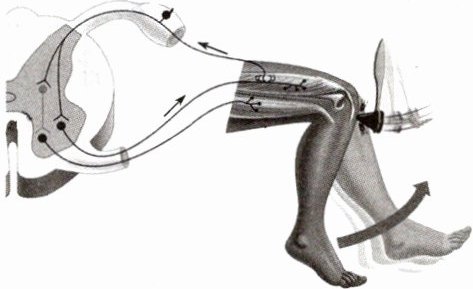 )A.叩击膝盖下部的韧带会使感受器兴奋