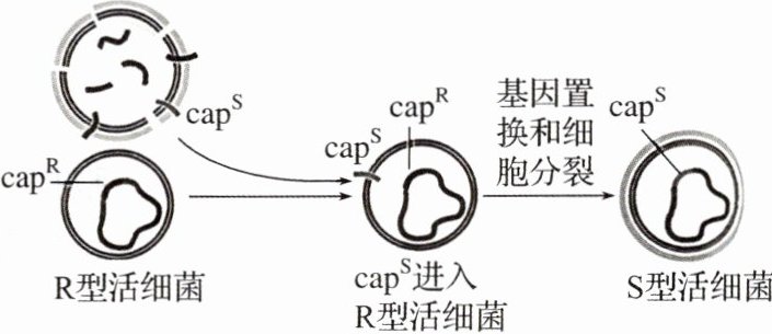 8. (多选)将加热杀死的S型细菌与R型活细菌混合培养后,R型活细菌转化为S型活细菌的机理如图所示($\text{cap}^{\text{S}}$为带有荚膜合成基因的DNA片段)。下列相关叙述正确的是(