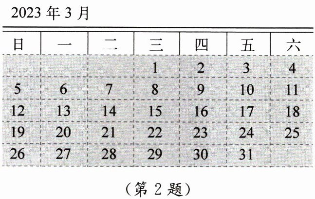 2. 如图,观察月历,2023年的儿童节是星期____。