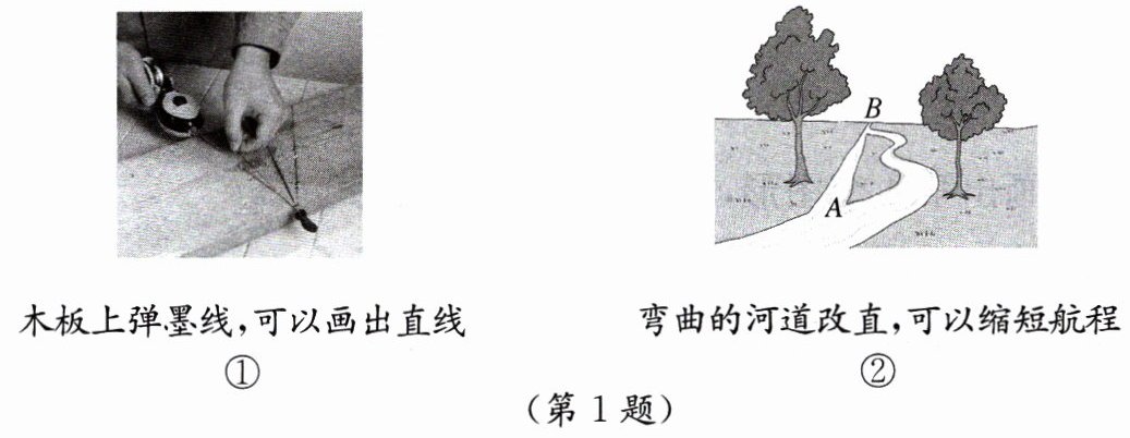 这可以用基本事实“两点之间,线段最短”来解释。在几何学中,两点之间的线段是最短的路径,因此将弯曲的河道改直可以缩短航程,这正是“两点之间,线段最短”的应用。