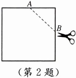 2. 如图,把正方形纸片沿虚线AB减去一个角,得到一张五边形纸片,则这个五边形的周长______(填“>”“<”或“=”)原来正方形的周长.