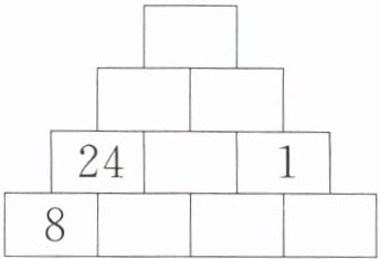 5 丽丽在右图中填数,使得每个数都是下方两个数的积。她已经填出了一些数,请你帮她把空格里的数填写完整。
