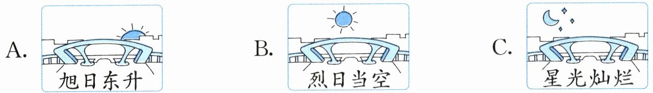 5. 小军一家在假期乘火车去苏州游玩,他们晚上8:50出发,26小时30分钟后到达,小军下火车后看到的景象可能是( )。