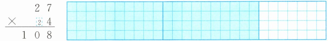 2 军军在计算$27×4$时,既列了竖式,又画了方格图。