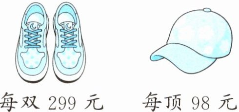 7 王阿姨带了700元去商场购物,她想买两双相同的运动鞋和一顶帽子,如下图。她带的钱够吗?