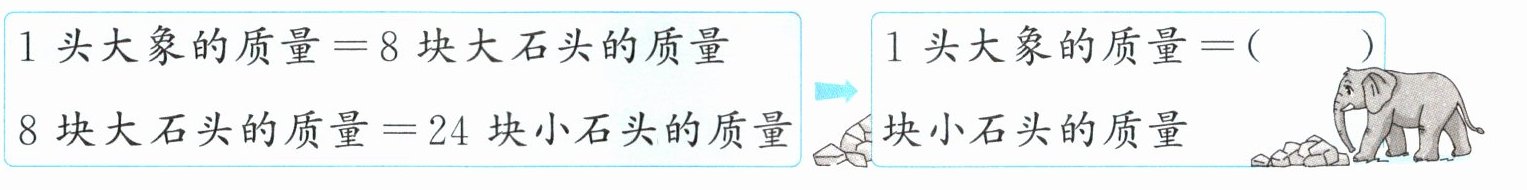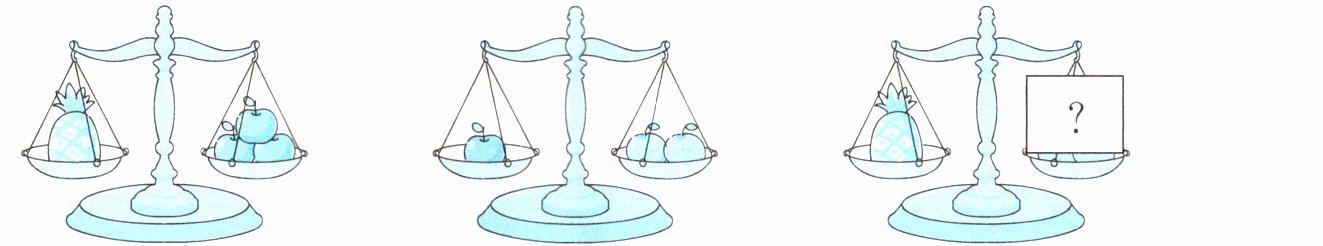 2 观察下图,要使天平保持平衡,“?”处需要放(