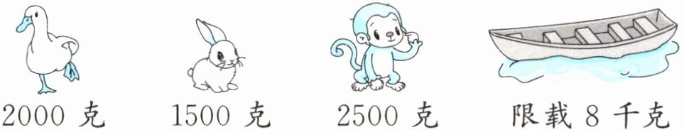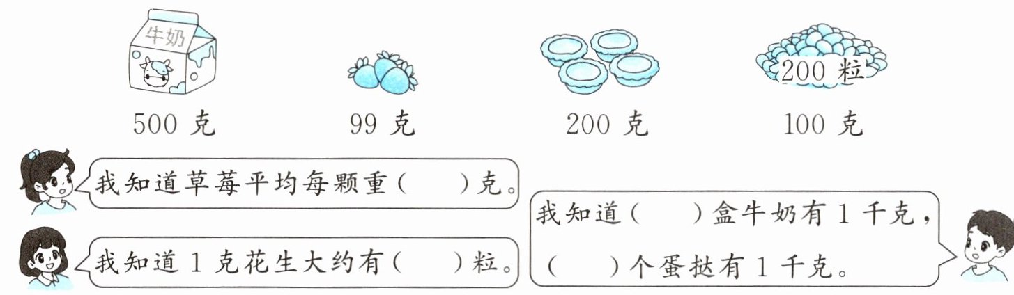 1 小宇分别称出了下面物体的质量,想一想,填一填。