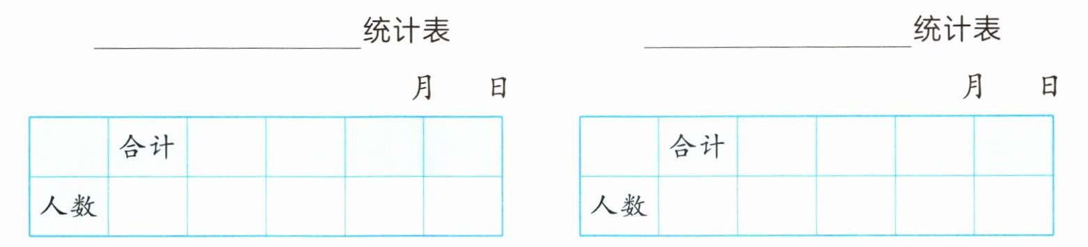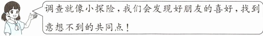 1 亲爱的同学,你的两项调查都完成了吗?请你将收集的数据整理在下面,可以画“√”,也可以画“正”字。