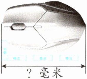 4 一块橡皮的长度是3厘米,厚度是6毫米。张老师用这块橡皮量鼠标的长,先用橡皮的长量了3次,接着用橡皮的厚量了1次,正好量完(如下图)。鼠标的长是多少毫米?