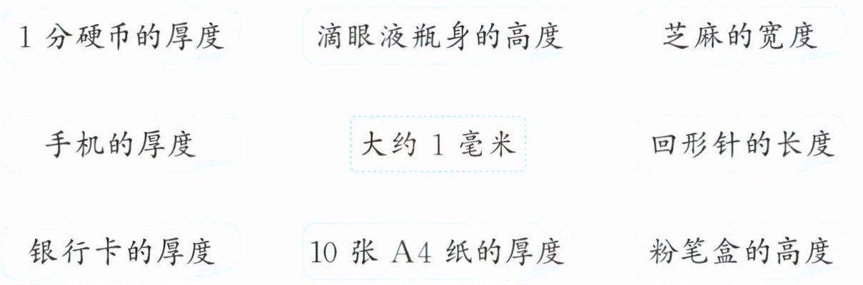 3 下面大约是1毫米的有哪些?连一连。