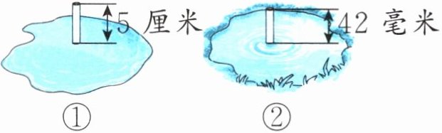 答:②号水坑中的水更深,比另一个水坑中的水深8毫米。