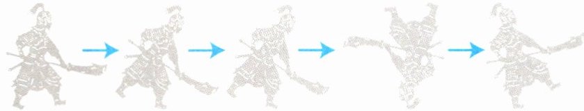 4. 观察皮影戏师傅操控一个皮影武将的表演,判断每个表演动作的变化。下面描述正确的是(