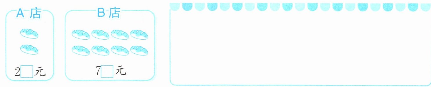 A店面包的价格最低是10元,B店面包の价格低于10元。答:去B店购买比较划算。解析 根据题图可知:每个面包的价格=总钱数÷面包个数A店每个面包的价格=2