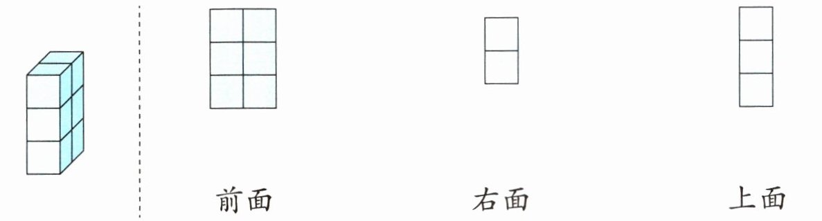 摆成下面的长方体和正方体。从前面看到的图形相同的是(