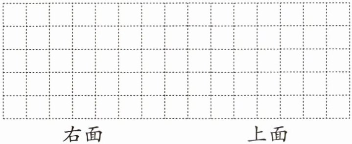 摆成一个长方体,如果从前面看到的是如右图的长方形,这个长方体应该怎样摆放?先摆一摆、看一看,再在方格纸上分别画出从右面和上面看到的图形。