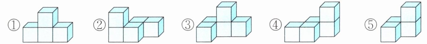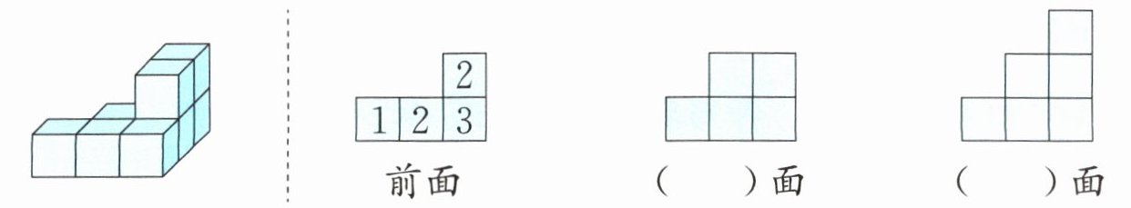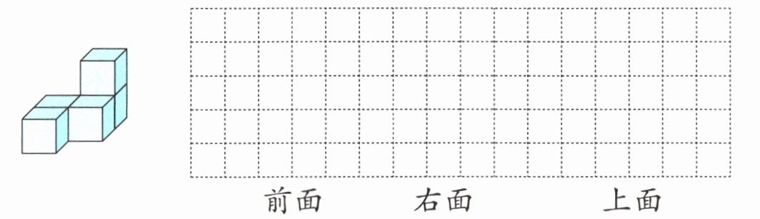2 摆一摆,看一看,分别画出从前面、右面和上面看到的图形。
