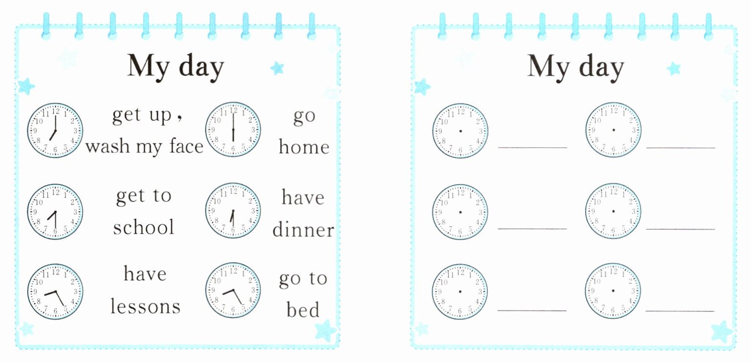 三、[应用实践]活动最后要求每位学生制作一份属于自己的"一日时间表"。仿照给出的时间表,制作你的时间表吧。