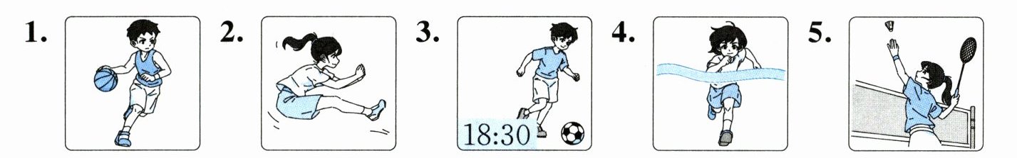 五、根据中文、图片或首字母提示,补全句子或对话。(5 分)