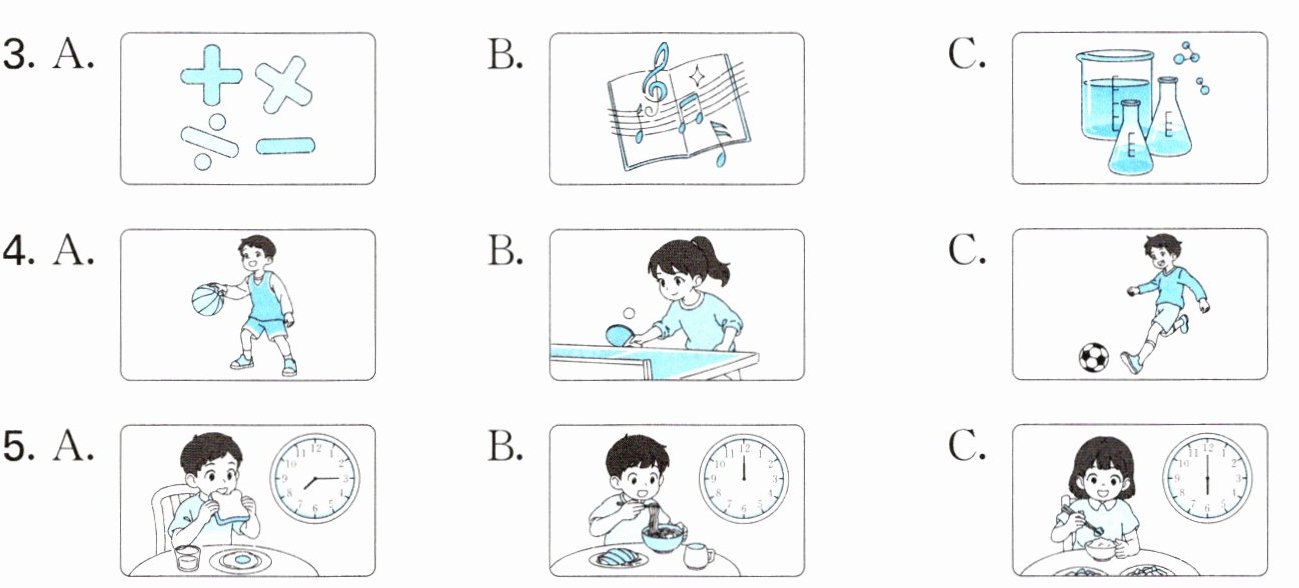 )3. They have Chinese, Maths, English, Music, PE and Art.(