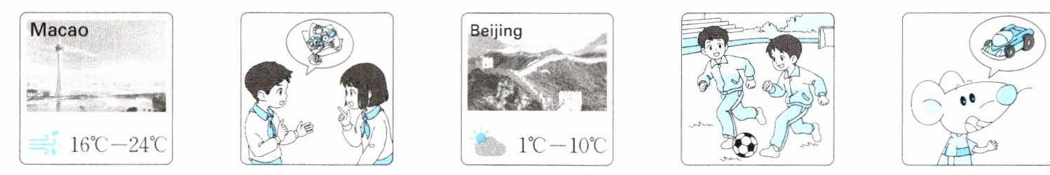 )4. A. sunny and hot B. cloudy and windy C. cloudy and hot(