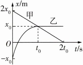 交点代表相遇,此时两质点间的距离为零,故D错误。甲的x - t图线的斜率不变,因此0 - 2t₀时间内,甲做匀速直线运动,故B错误。0 - t₀时间内,乙的x - t图线的切线斜率在减小,说明乙运动得越来越慢,A正确。