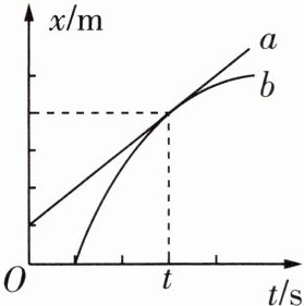 2. 公路上行驶的甲、乙两辆汽车的位移—时间图像如图中直线a和曲线b所示,t时刻直线a和曲线b刚好相切,下列说法正确的是