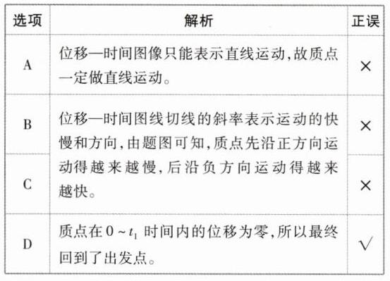 4. 如图所示是某质点在$0 ~ t_1$时间内的位移—时间图像,在这段时间内,下列说法正确的是