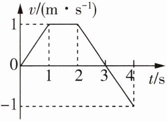 物体在第 $ 1 \, \text{s} $ 内和第 $ 4 \, \text{s} $ 内的位移大小都等于图线与横轴所围面积的大小,大小都为 $ 0.5 \, \text{m} $,$ C $ 错误;物体在 $ 0 \sim 2 \, \text{s} $ 内的位移和 $ 0 \sim 4 \, \text{s} $ 内的位移相同,但由于时间不同,因此平均速度大小不等,$ D $ 错误。