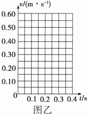 (2)根据上表中的数据,在图乙中作出纸带运动的v - t图像,并分析纸带速度随时间的变化规律。