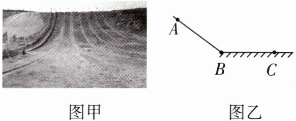 8.(2025·山西大同一中期中,多选)素有塞北“小九寨”之称的大同乌龙峡景区内,有一处滑草项目如图甲,现将情境简化为图乙,其中整个滑道由倾斜直轨道$AB和粗糙的水平轨道BC$组成。$t = 0时某游客从A$点由静止开始匀加速下滑,经过$B$点前后速度大小不变,之后在$BC$上做匀减速直线运动,最后停在$C$点。若第2s末和第6s末速度大小均为4m/s,第4s末速度大小为6m/s,则(
