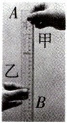 $D$ 反应时间为零指的是甲刚释放刻度尺时乙就夹住,刻度尺并未下落,故反应时间尺的 $0$ 刻度位于 $B$ 处,$A$ 错误;做匀加速直线运动的物体,相同时间内的位移逐渐增大,则随着刻度尺的下落,每隔 $0.02s$ 刻度尺的位移逐渐增大,可知反应时间尺的刻度疏密不均匀,反应时间尺的刻度 $B$ 处较密,$A$ 处较疏,故 $B$、$C$ 错误,$D$ 正确。