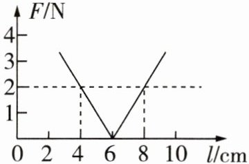 弹簧在4cm时被压缩,弹簧在8cm时被拉长,在这两个长度下,弹簧上的弹力大小相等,方向相反,C错误。